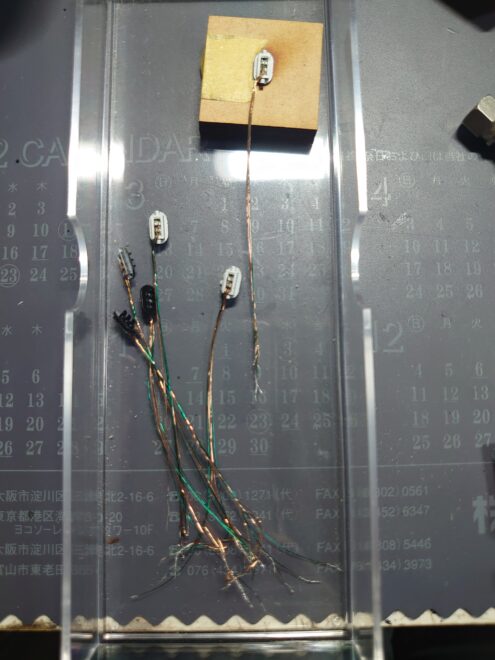 まずは1608LEDのポリウレタン線へのハンダ
