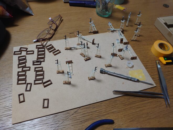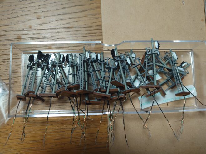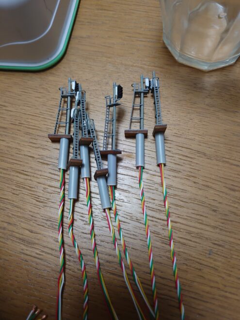 柱の組み立て。仕込みやすい用にベースは特注してます。柱と信号機側のドッキングには洋白線で補強しました。