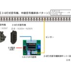 ・レイアウトの線路上にセンサーを設置し、車両後部がセンサー通過後一定秒数経過すると切り替わります。