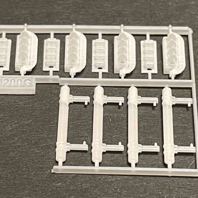 高繊細の3Dプリンターで作成したNゲージ用の信号機のストラクチャーです。信号機4個、支柱4本が付属しています。